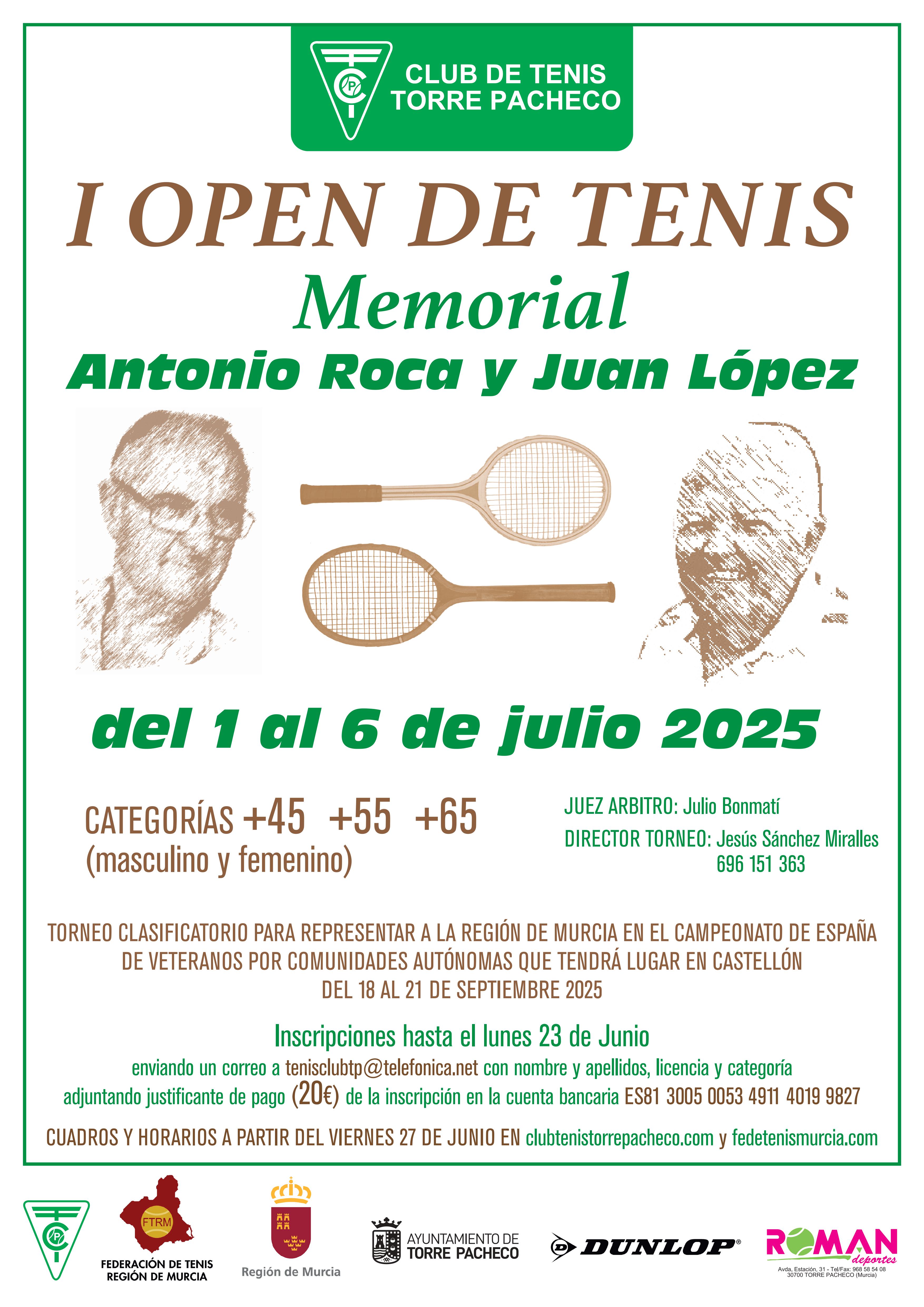 Más información en https://clubtenistorrepacheco.com/ y en https://fedetenismurcia.com/individuales-veteranos-as/