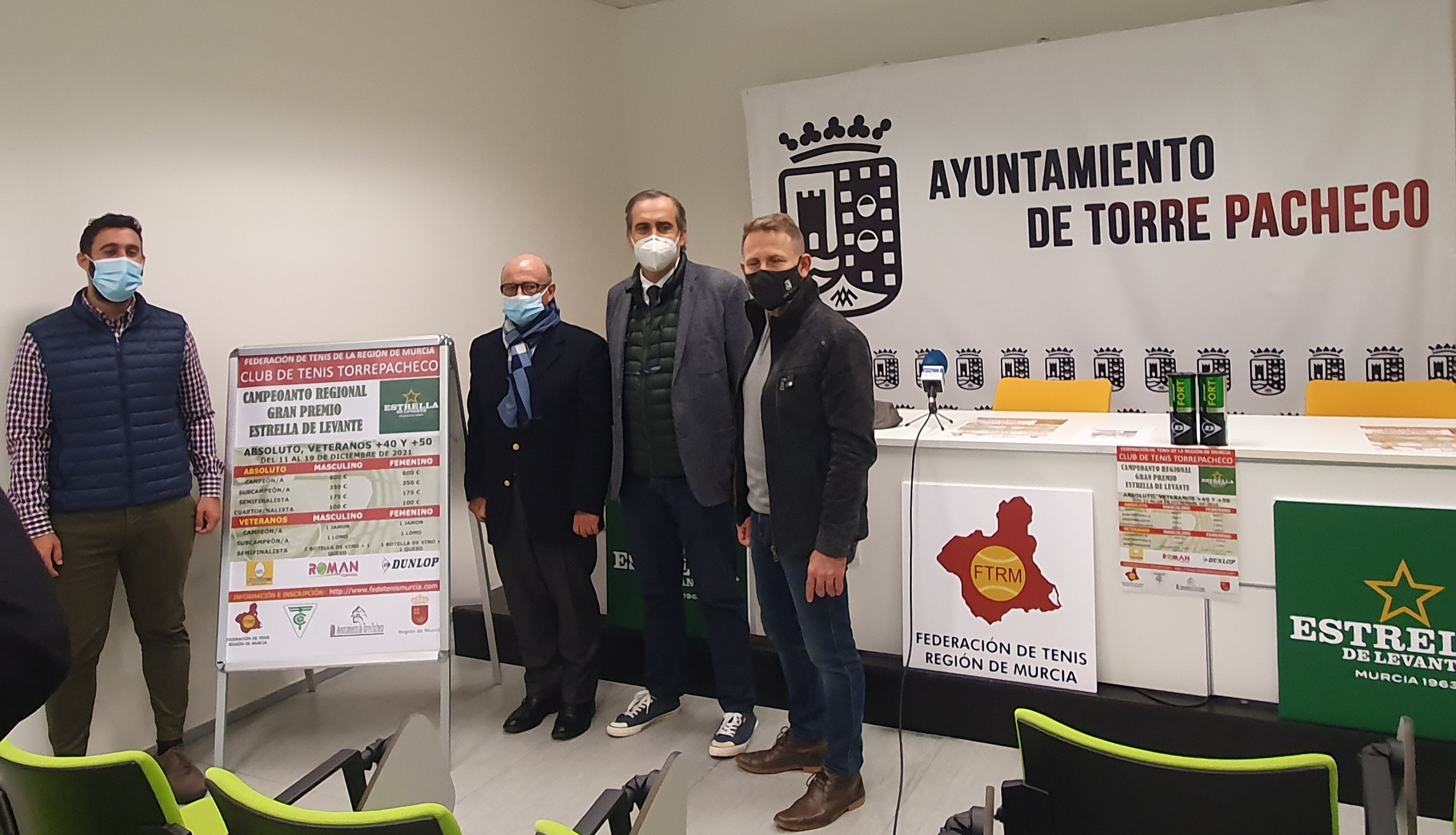 En el Ayuntamiento de Torre Pacheco se ha presentado el Campeonato Regional Gran Premio Estrella Levante con más de 100 tenistas inscritos en sus distintas categorías: Absoluto femenino y masculino y Veteranos +40 y +50 masculino.